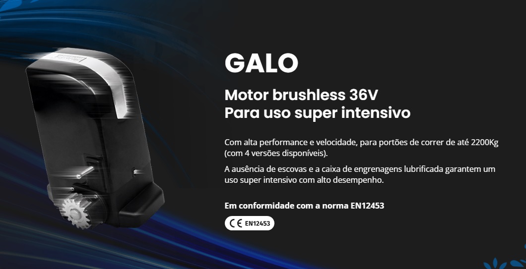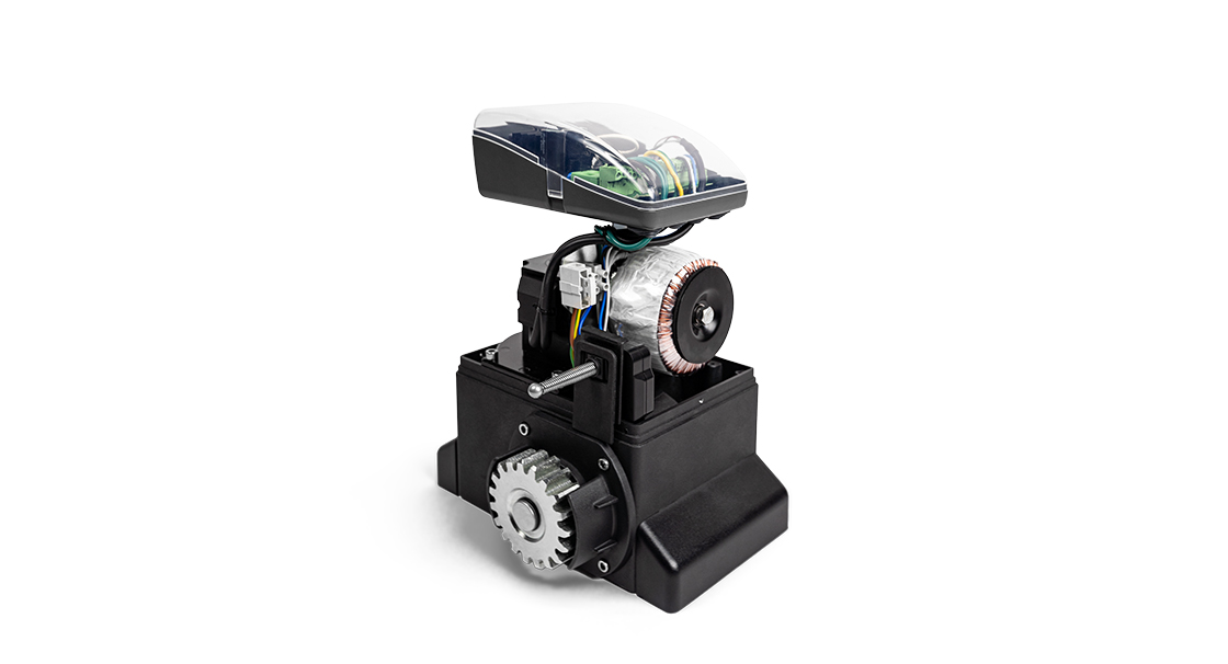 Motor compacto de dimensões reduzidas para uma fácil e cómoda instalação, motorização e sistema mecânico desenvolvidos para um movimento silencioso, construção em alumínio que proporciona uma elevada robustez e resistência com sistema de desbloqueio para abertura manual em caso de avaria.