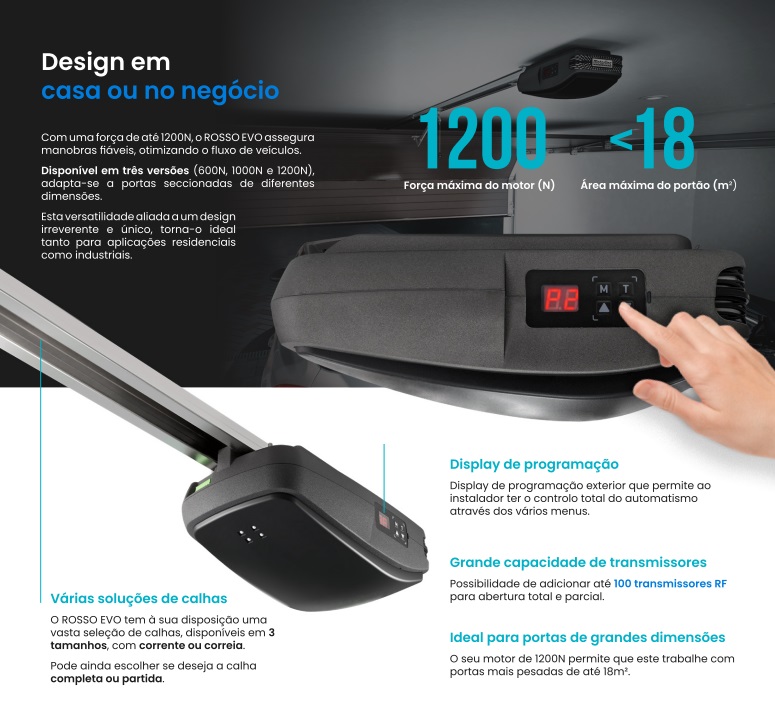 Para uso residencial de portas seccionadas até 10m² e abertura de 2,50m